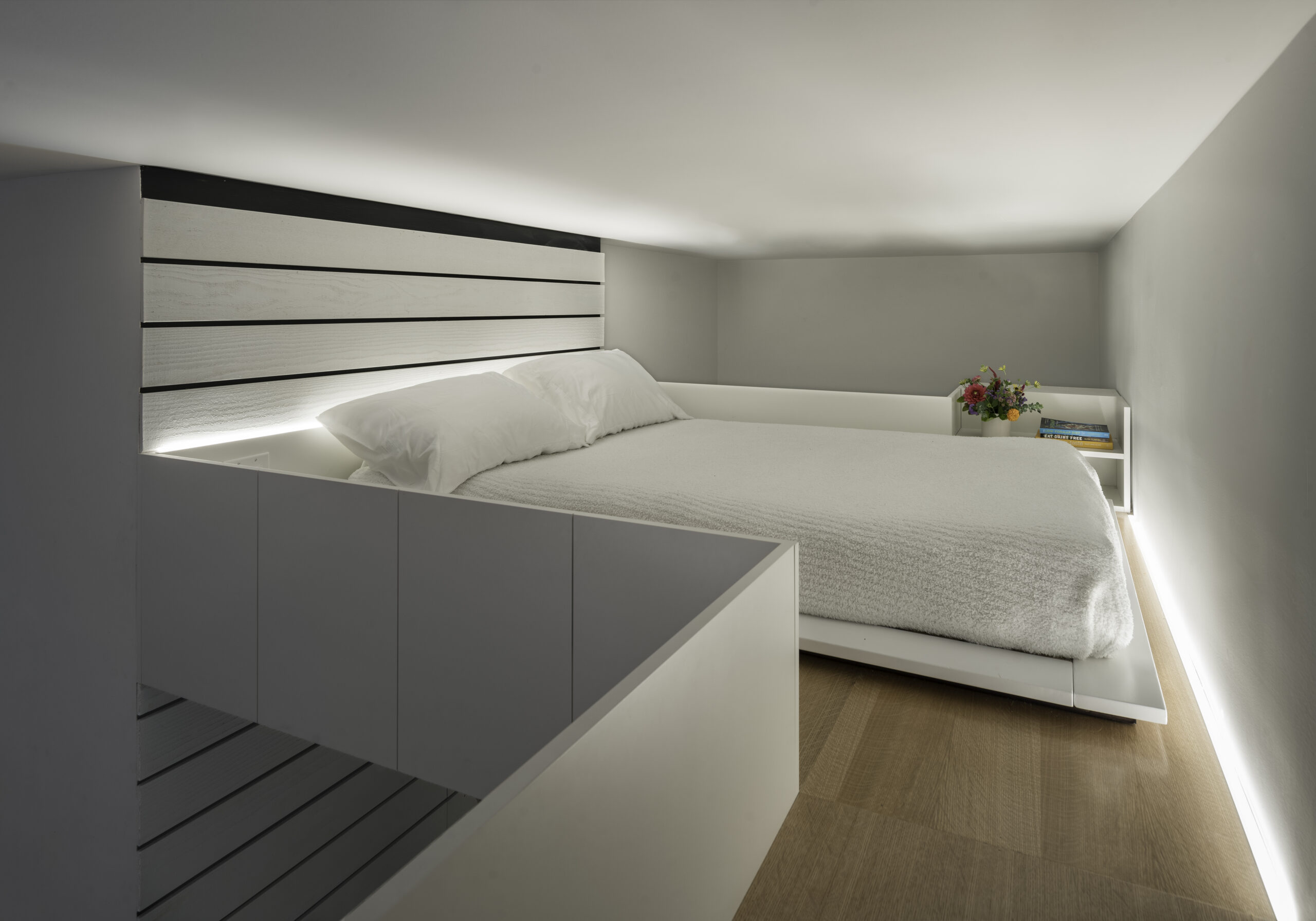 In addition to its practical role, the loft serves as a soft light fixture, casting a warm glow across the space.