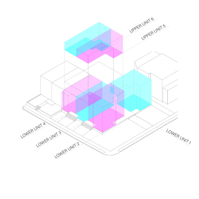 Located in a middle-income neighborhood in NE Washington, DC, the Renata reimagines three two-story rowhomes as a six-unit Micro-Community. Featuring multigenerational housing for the “missing middle,” The units range in size from 2 to 4 bedrooms, with a shared entry and courtyard amenity space.
