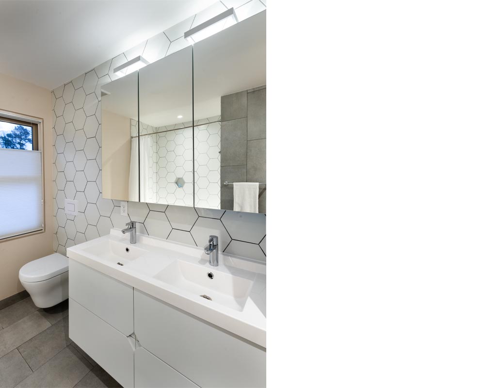 Programmatic functions were placed along the edges and a new, open space was created in the center. The center was fitted with a large open plan kitchen and dining space to create a comfortable gathering space for the family.